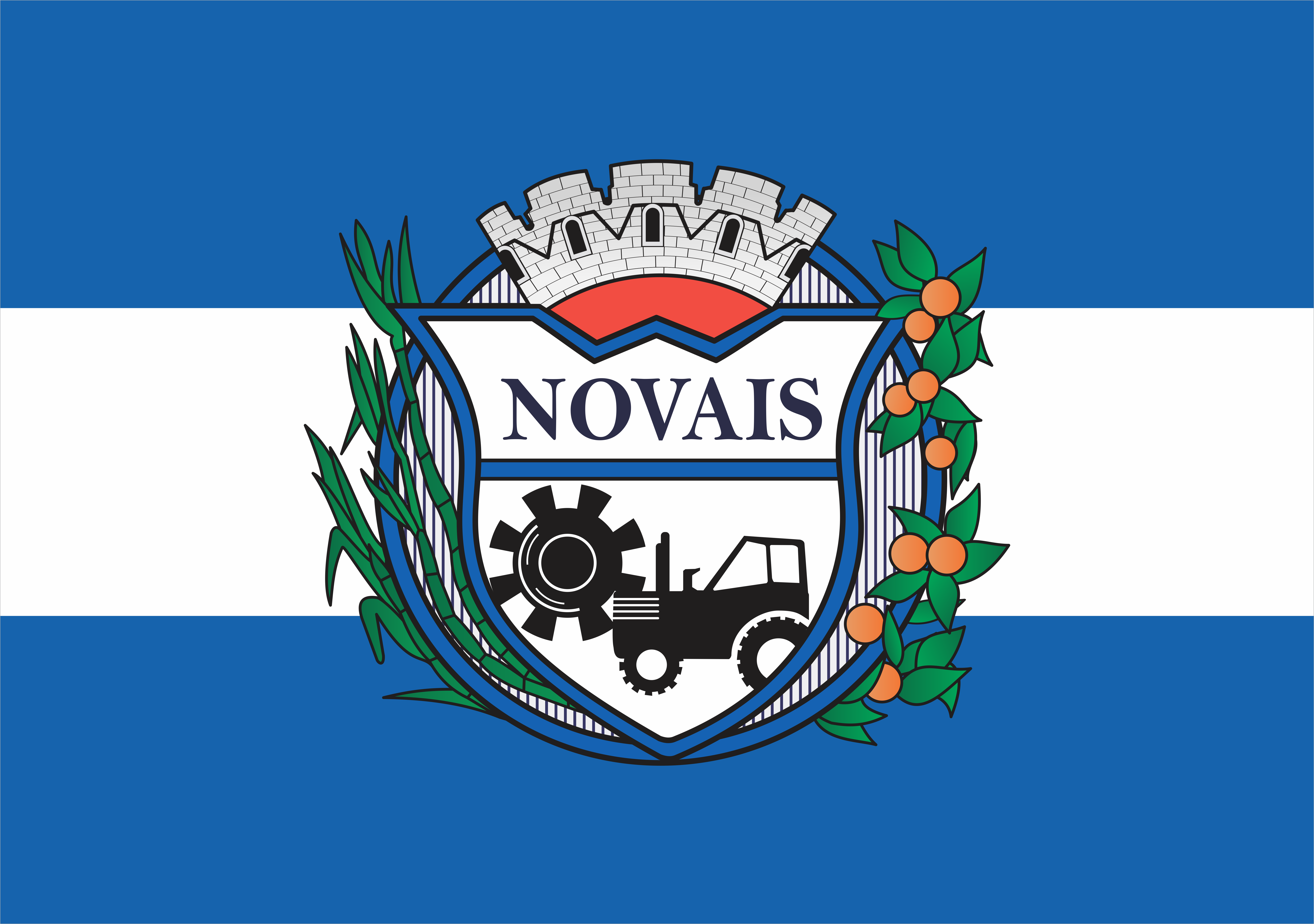 - Brasão de Novais: A presença do brasão no centro da bandeira reforça essa identidade e destaca os aspectos mais importantes da cidade.