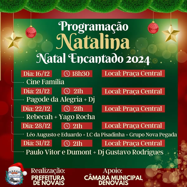 Confira a programação especial que a Prefeitura de Novais, com o apoio da Câmara Municipal, preparou para este Natal.