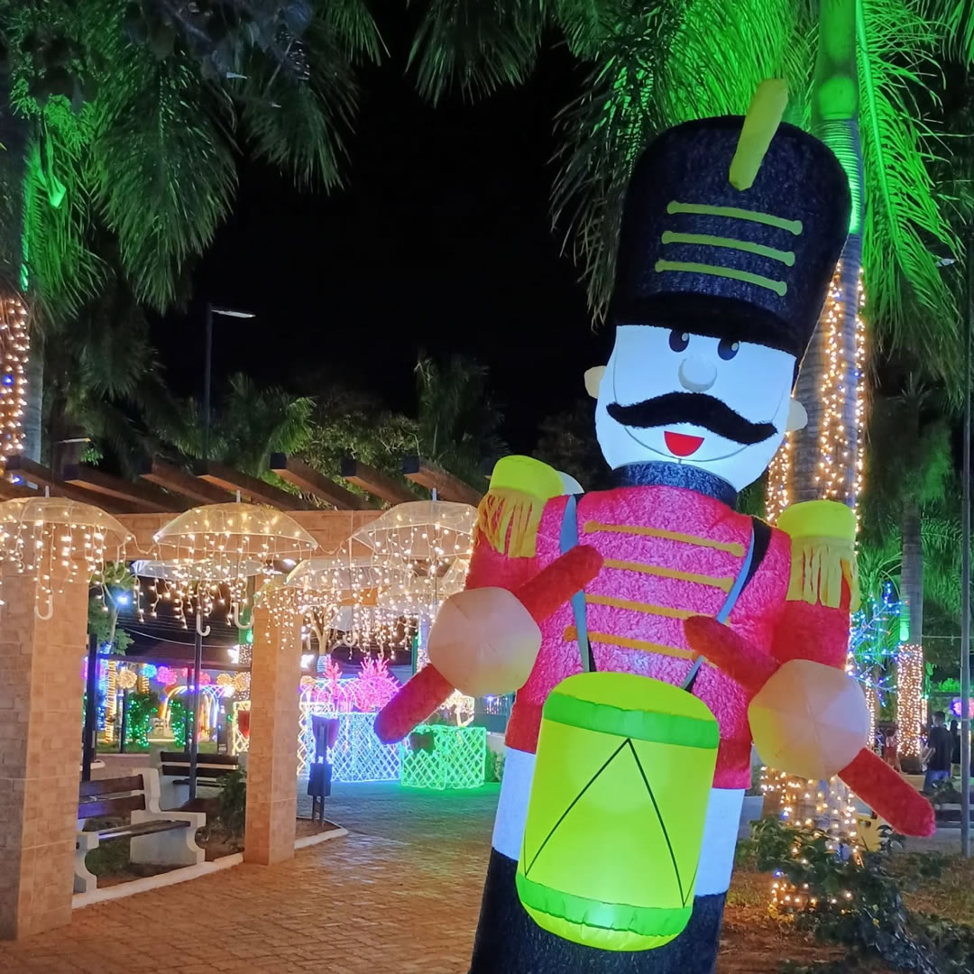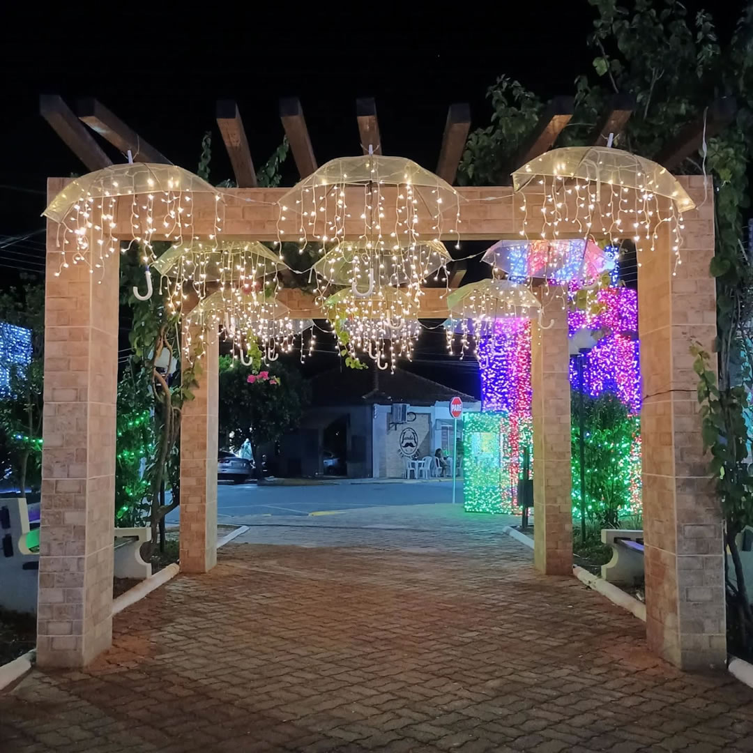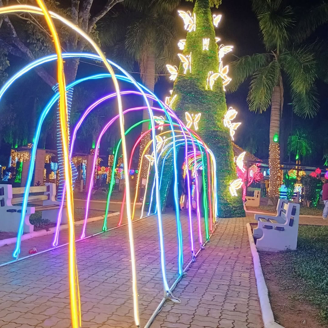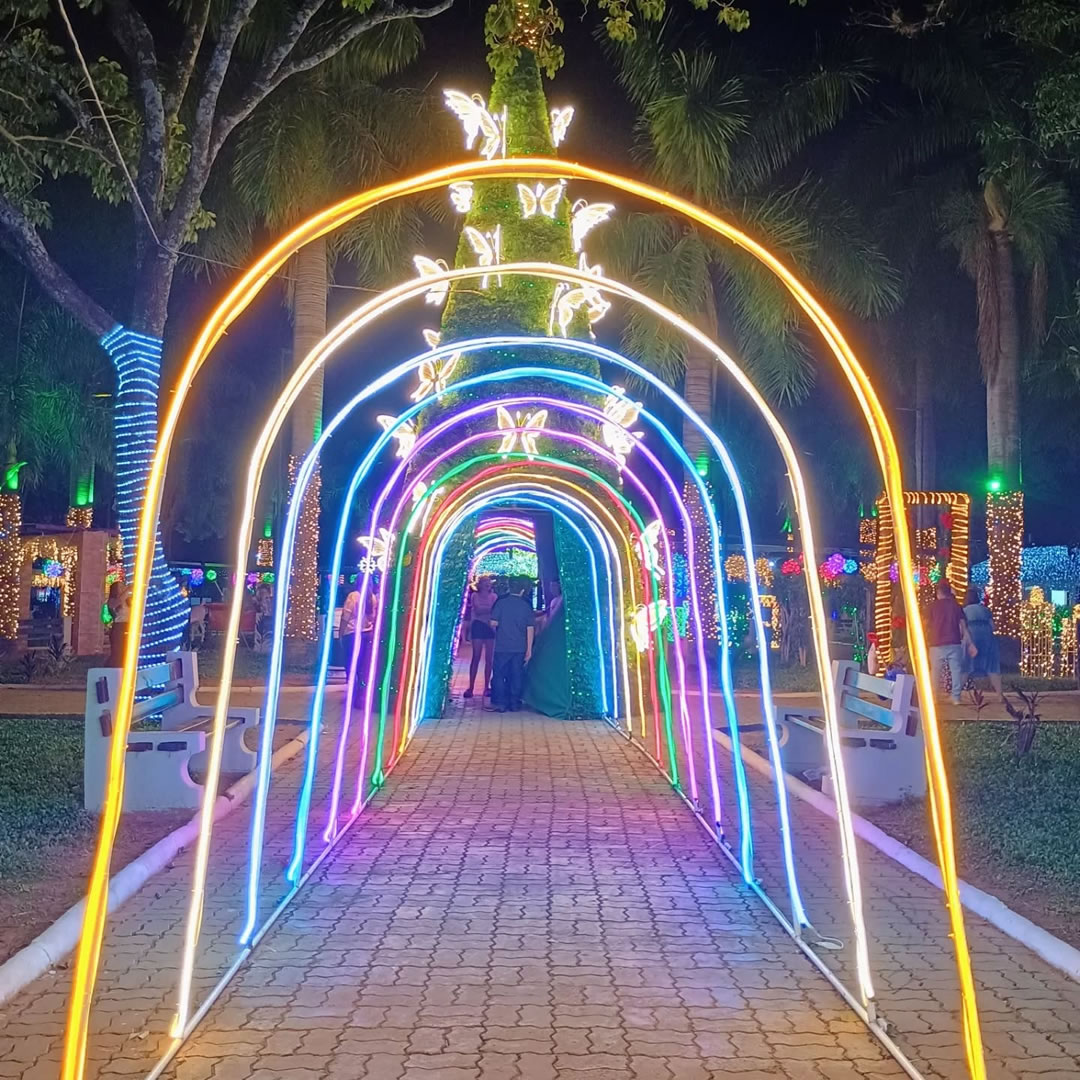 Quem caminha pela praça se encanta com a riqueza de detalhes. Entre os grandes destaques da decoração está o túnel de luzes multicoloridas, que se tornou o cenário favorito para fotos e vídeos. A praça também recebeu uma imponente árvore de Natal adornada com borboletas luminosas, simbolizando transformação e esperança para o novo ano que se aproxima.