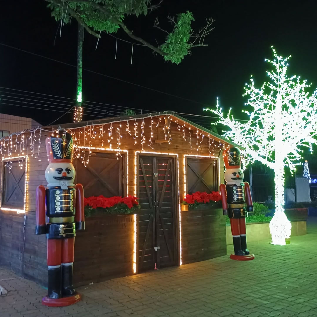 O Natal Encantado não estaria completo sem a presença do Bom Velhinho. A Casinha do Papai Noel, com sua arquitetura rústica e acolhedora, guardada pelo clássico boneco Quebra-Nozes, é o ponto de encontro das crianças, que podem fazer seus pedidos e tirar fotos, garantindo memórias inesquecíveis.