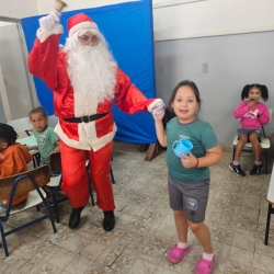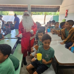 Na última semana, os alunos da escolinha receberam uma visita pra lá de especial. Foram surpreendidos pelo Papai Noel trazendo a magia e alegria para as crianças e reforçando a importância da fantasia e do espírito natalício no desenvolvimento infantil.