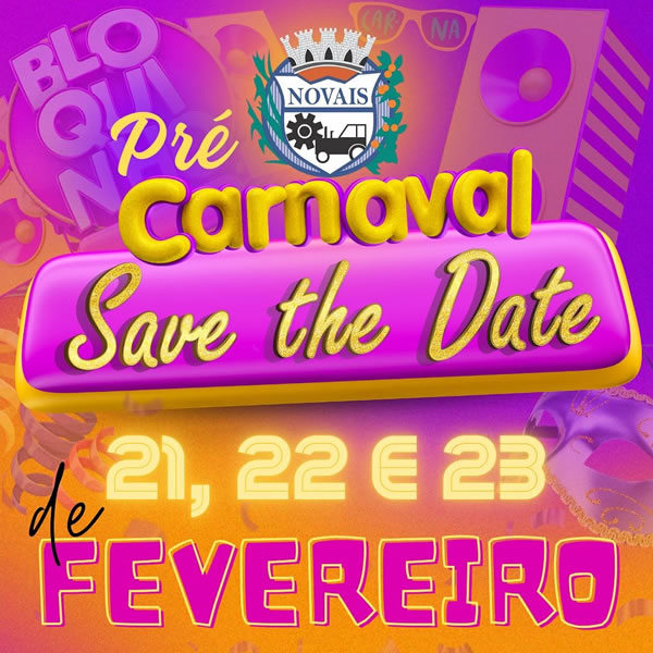 Nos dias 21, 22 e 23 de fevereiro, venha curtir o Pré-Carnaval em Novais!