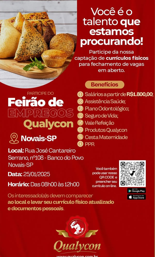 Atenção para essa oportunidade de emprego, neste sábado 25/01, no prédio do Bando do Povo de Novais.